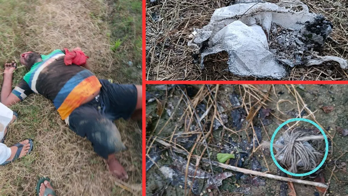स्थानीय लोगों के मुताबिक घटनास्थल से वह लोग जब अकील को तीन सौ मीटर दूर चकरोड मार्ग की तरफ ला रहे थे तभी उसे कांटा चुभ गया। इसके बाद अकील जोर से चिल्लाया तो कांटा निकाला गया। एक चप्पल भी खेत की मेड़ पर जबकि एक घटना ल पर मिली। ये चप्पल भी अकील की बताई जा रही हैं।