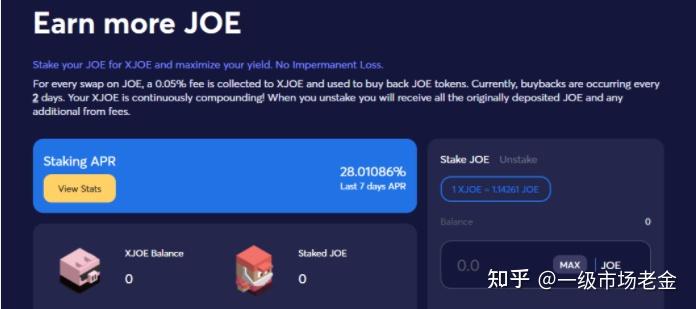 相反,您可以将您的 JOE 代币质押到 xJOE,它没有永久性损失 (IL),并在 JOE 代币上涨时最大化您的利润。
