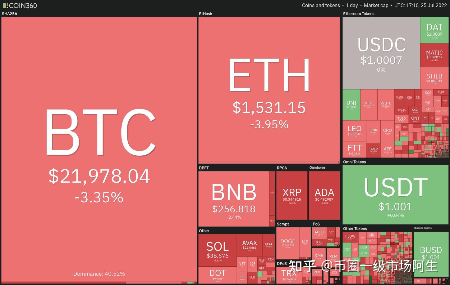 随着多头在 7 月 26 日至 7 月 27 日的联邦公开市场委员会会议之前缩减头寸,比特币 ( BTC ) 和大多数主要山寨币都在 7 月 25 日获利了结。这表明市场情绪仍然脆弱,多头没有信心关于在事件中持有多头头寸。在比特币未能维持在 200 周移动平均线 22,780 美元上方之后,几位分析师仍保持看跌观点。CryptoQuant 贡献者 Venturefounder 预计,在确认宏观底部之前,抛售将恢复,比特币将跌至14,000 美元。