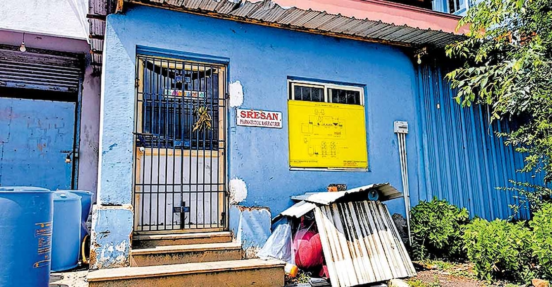 ഇവിടെ ഉണ്ടാക്കുന്നതും മരുന്ന്; കോൾഡ്രിഫ് സിറപ് നിർമിക്കുന്ന ശ്രേസൻ ഫാർമസ്യൂട്ടിക്കൽസിന്റെ ഓഫിസ് തകരഷെഡ്ഡിൽ