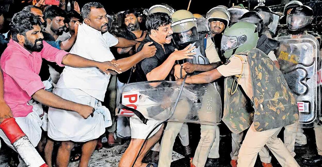 ചിതറി ഓടുന്നതിനിടെ ഒറ്റപ്പെട്ടു പോയ പ്രവർത്തകരെ പൊലീസ് വളഞ്ഞിട്ട് മർദിച്ചു. സംഘർഷം നിയന്ത്രിക്കാൻ എത്തിയ പ്രവർത്തകരെയും പൊലീസ് മർദിച്ചു. ഇതിനിടെയാണ് പ്രവർത്തകർക്ക് പരുക്കേറ്റത്. അര മണിക്കൂറോളം പൊലീസും പ്രവർത്തകരും തമ്മിൽ സംഘർഷമുണ്ടായി.പൊലീസ് നടപടിയിൽ പ്രതിഷേധിച്ച് പ്രവർത്തകർ റോഡിൽ കുത്തിയിരുന്നു.  ഇതോടെ എംജി റോഡ് വഴിയുള്ള ഗതാഗതവും ഏറെനേരം തടസ്സപ്പെട്ടു. ‌ഇന്നലെ രാത്രി പത്തരയോടെയായിരുന്നു പ്രതിഷേധം. വൻ പൊലീസ് സന്നാഹം സെക്രട്ടേറിയറ്റിനു മുന്നിലുണ്ടായിരുന്നു. English Summary: