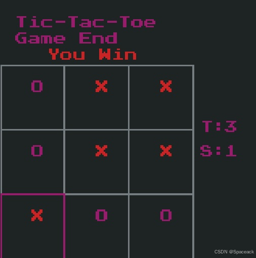 毎落一子后,我们需要对当前棋局状态作出判定。因此我们用规则定义一个judge函数。规则如下:横向3个棋子连成一线,则胜利。纵向3个棋子连成一线,则胜利。斜向3个棋子连成一线,则胜利。棋盘上没有空位,则平局。如检查首行是否为同一玩家棋子可以对棋盘做等价性判断: