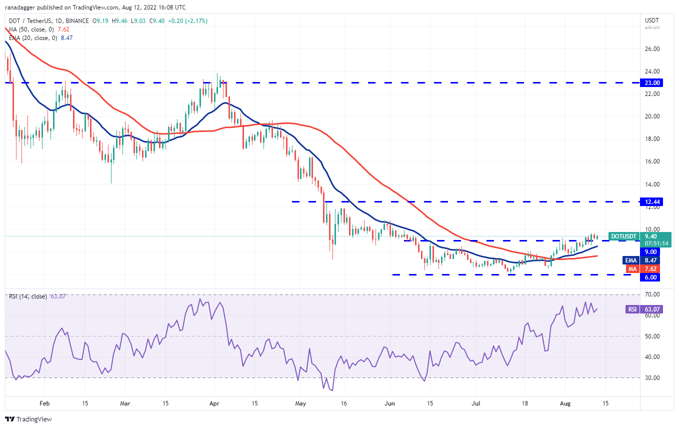 Polkadot ( DOT ) 在 9 美元的突破水平附近见证了多头和空头之间的近距离战斗。空头正试图将价格拉回 9 美元以下,而多头正试图将这一水平转变为支撑。