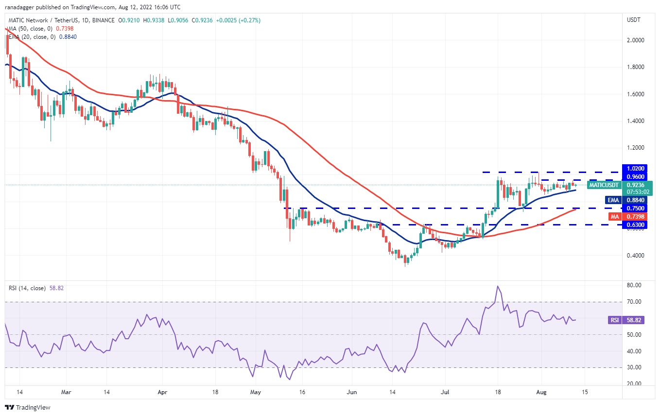 过去几天,多边形 ( MATIC ) 一直在 20 日均线 (0.88 美元) 和 0.96 美元之间窄幅交易,表明买卖双方犹豫不决。