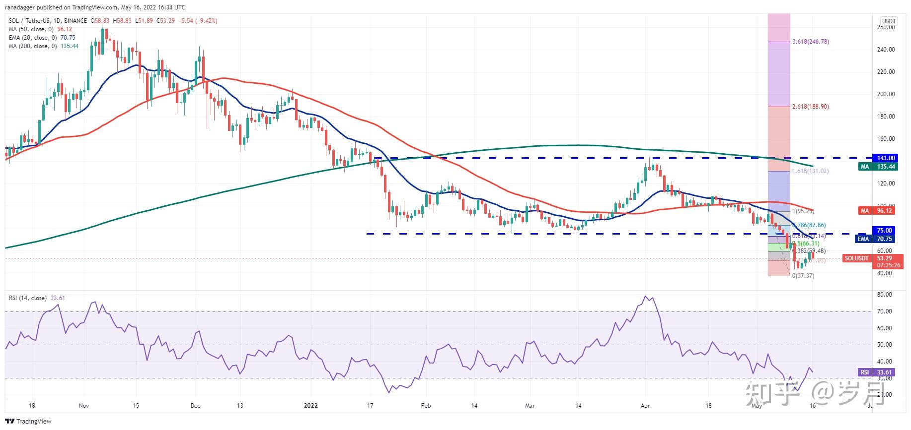 SOL/USDT 日线图。