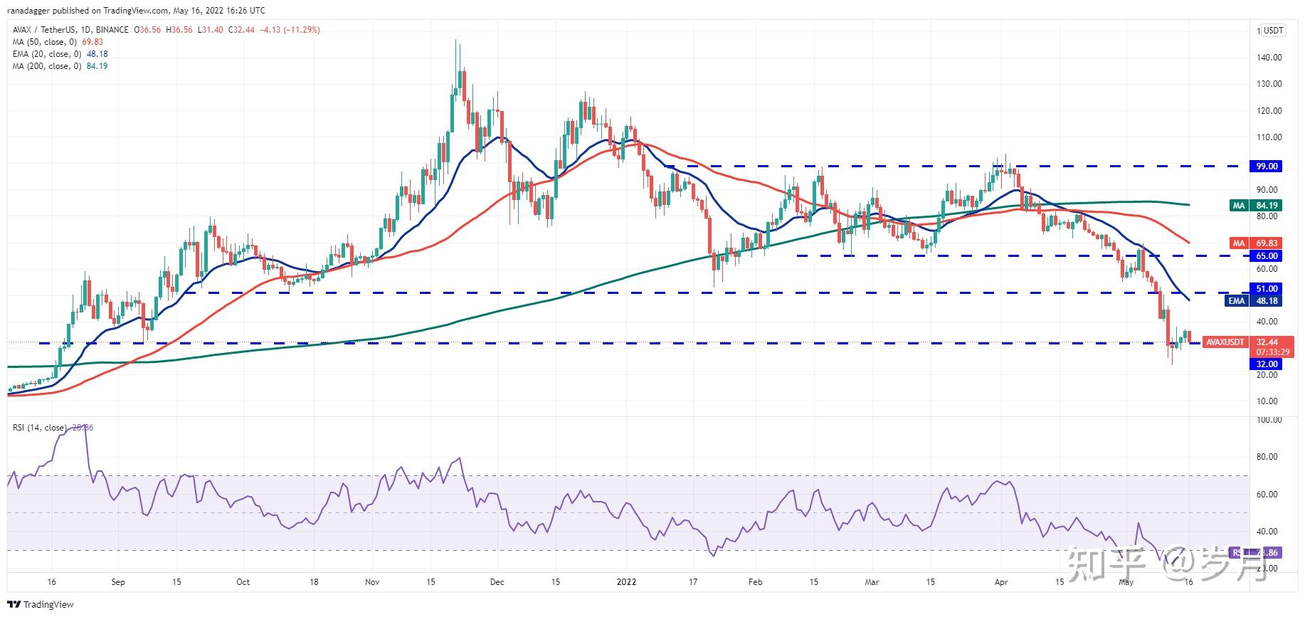 AVAX/USDT 日线图。