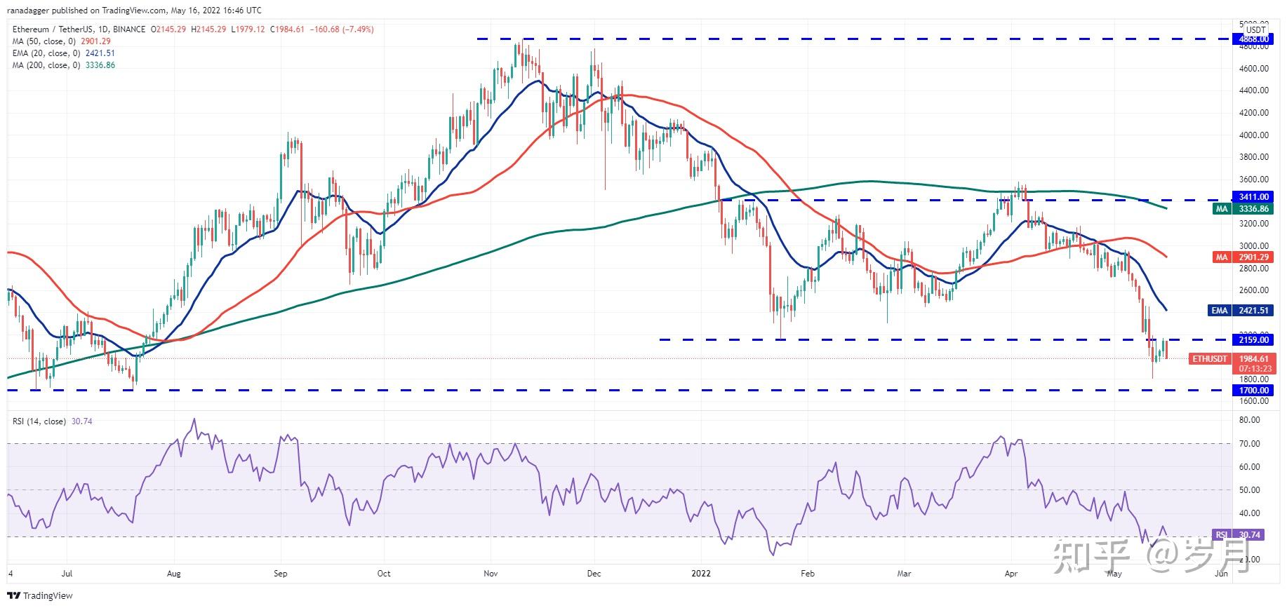 ETH/USDT 日线图。
