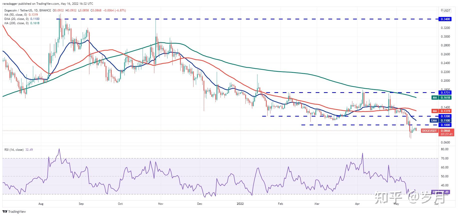 DOGE/USDT 日线图。